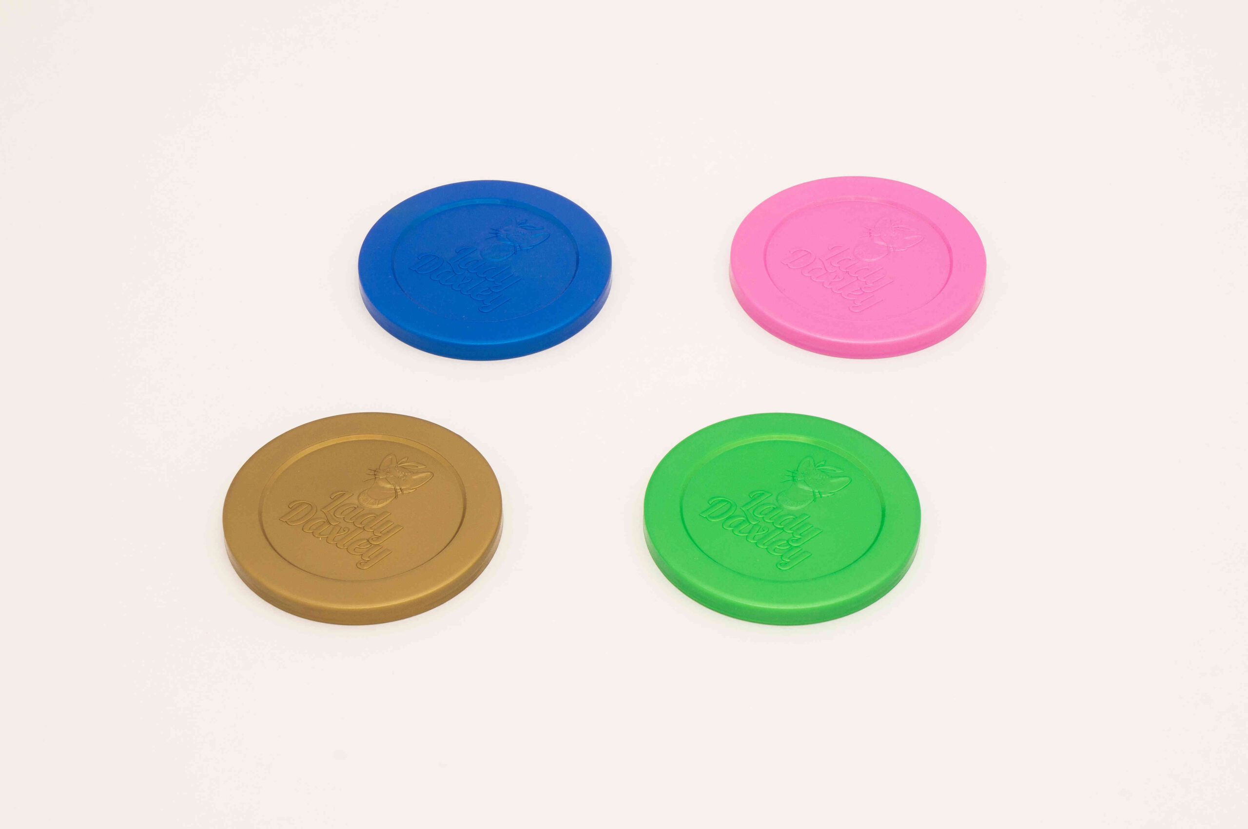 OWN PRODUCTSPatented reusable food storage system for industrial use Cover for soup dish Can lid Hospital bedpan cover Bakelite disc earrings Conveyore belt core